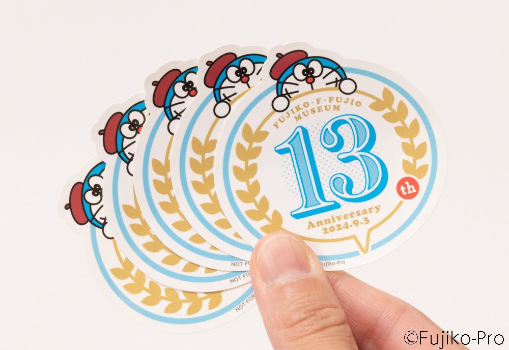 川崎市 藤子・F・不二雄ミュージアム(神奈川県川崎市多摩区長尾2-8-1、館長:小林順子)は、2024年9月3日(火)をもちまして、開館13周年を迎えます。それを記念し、1F「ミュージアムショップ」や3F「ミュージアムカフェ」では、ひと足早く、13周年記念のアイテムやメニューが登場します。9月3日(火)の開館記念日当日にご来館いただいたお客様には、13周年ロゴのオリジナルステッカーをプレゼント!(おひとりにつき1枚)