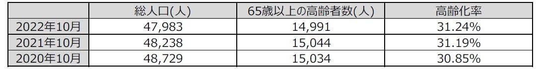 諏訪市が公表する人口統計(2022年10月1日時点)※1によると、諏訪市は人口47,983人に対して、65歳以上の高齢者は14,991人、高齢化率は31.24%です。総人口は年々減少しているものの、高齢化率は少しずつ上昇しています。「諏訪市高齢者福祉計画」※2では、今後の取り組むべき課題として、地域での見守り・支え合い体制づくりに向けて、地域での「つながり」づくりや生活支援体制の構築を図ることが掲げられています。