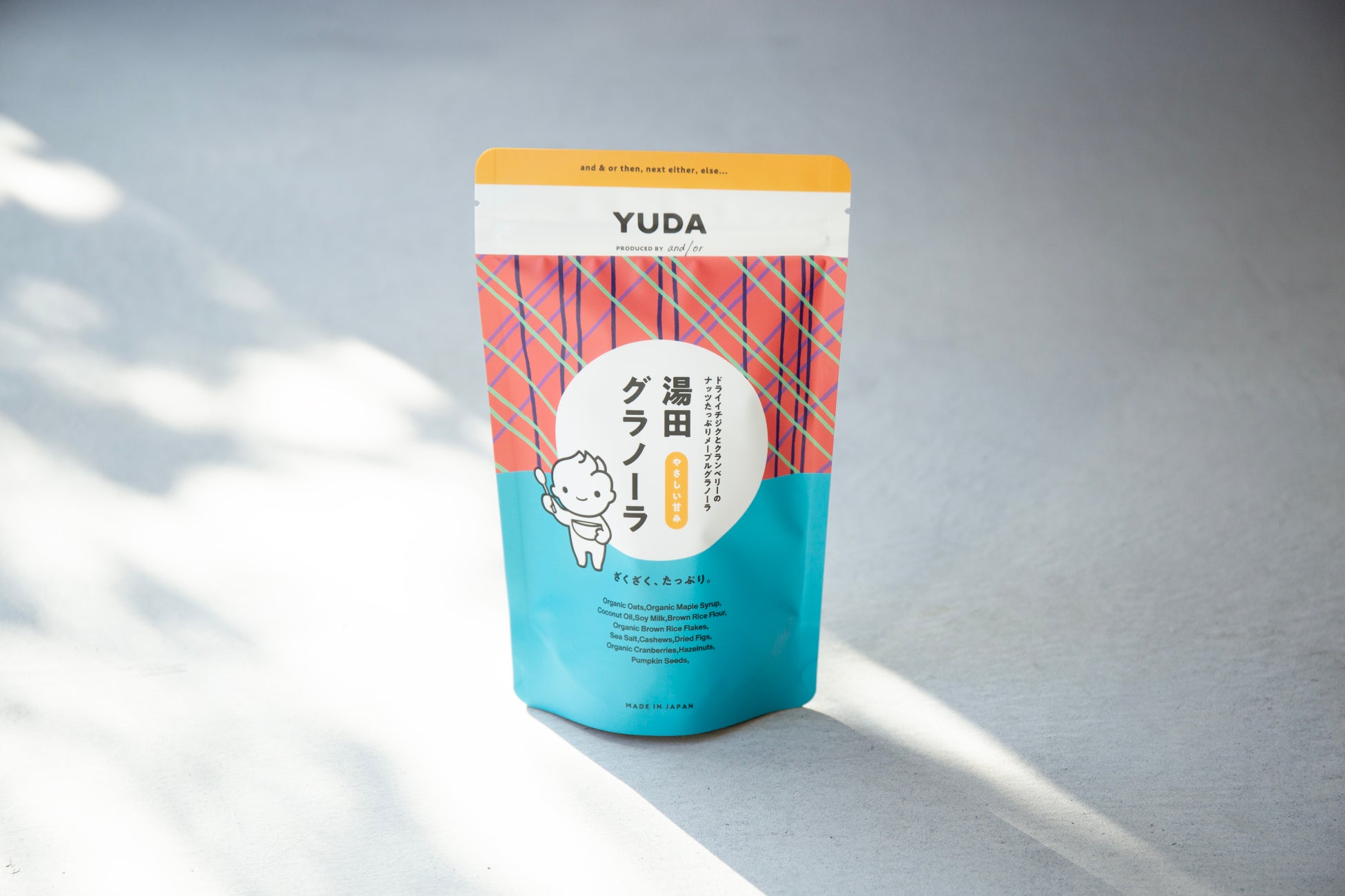 『湯田グラノーラ』は、新しい食習慣をグラノーラでデザインするグラノーラ専門店「and/or Granola」と、プレミアム湯田ヨーグルトを製造販売する「YUDAミルク株式会社」とのコラボレーションにより生まれた、「プレミアム湯田ヨーグルト(プレーン)」をもっと美味しく召し上がっていただくために生まれたグラノーラです。and/orが初めてプロデュースした特別なグラノーラ です。