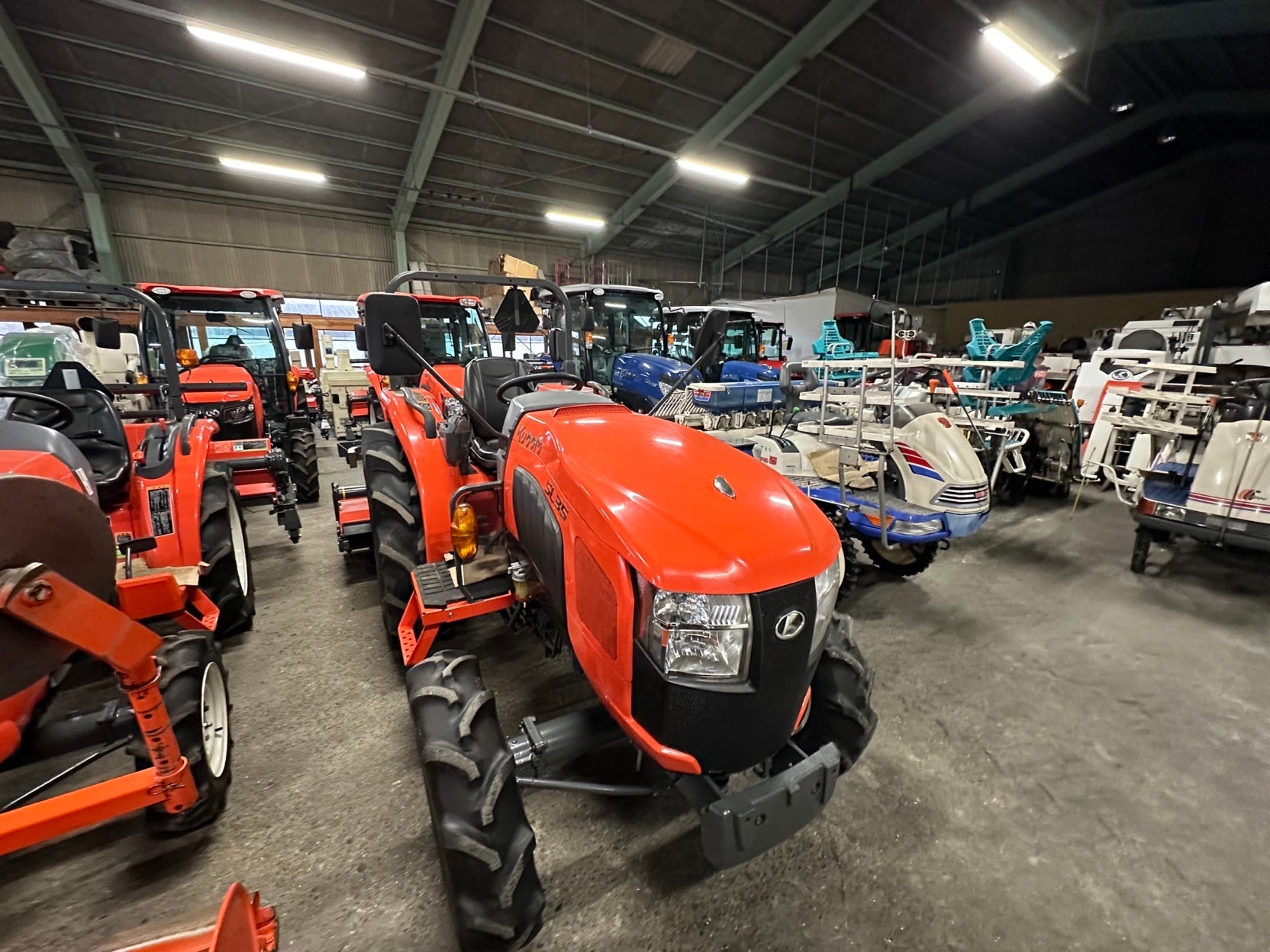 農機具王滋賀店は、2013年6月に行った移転オープン時から、様々な進化を遂げています。以前の店舗に比べ倉庫面積及び敷地面積が広がり、今まで以上に多くの農機具を展示することが可能となりました。それにより、より一層お客様のニーズに応えた販売ができるようになりました。さらに販売面だけでなく倉庫が広くなったことで、これまで買い取ることができなかった農機具を買い取ることができるようになりました。その結果、農機具の処分に困っているお客様の力になることができたと考えています。また、スタッフの人数も増加し、より充実したサービスを提供する体制を整えました。現在では農機具専門の整備士が配属されているため、部品があり修理可能な農機具に関してはメンテナンスを行ってから販売することやお客様からの農機具に関する質問に対して専門的な回答をすることが可能となりました。