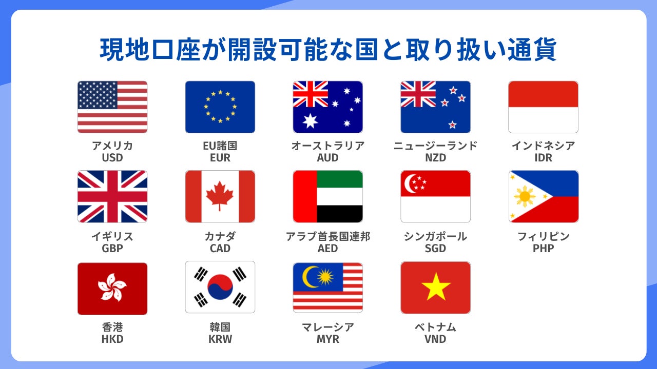 ■現地口座が開設可能な国と取り扱い通貨