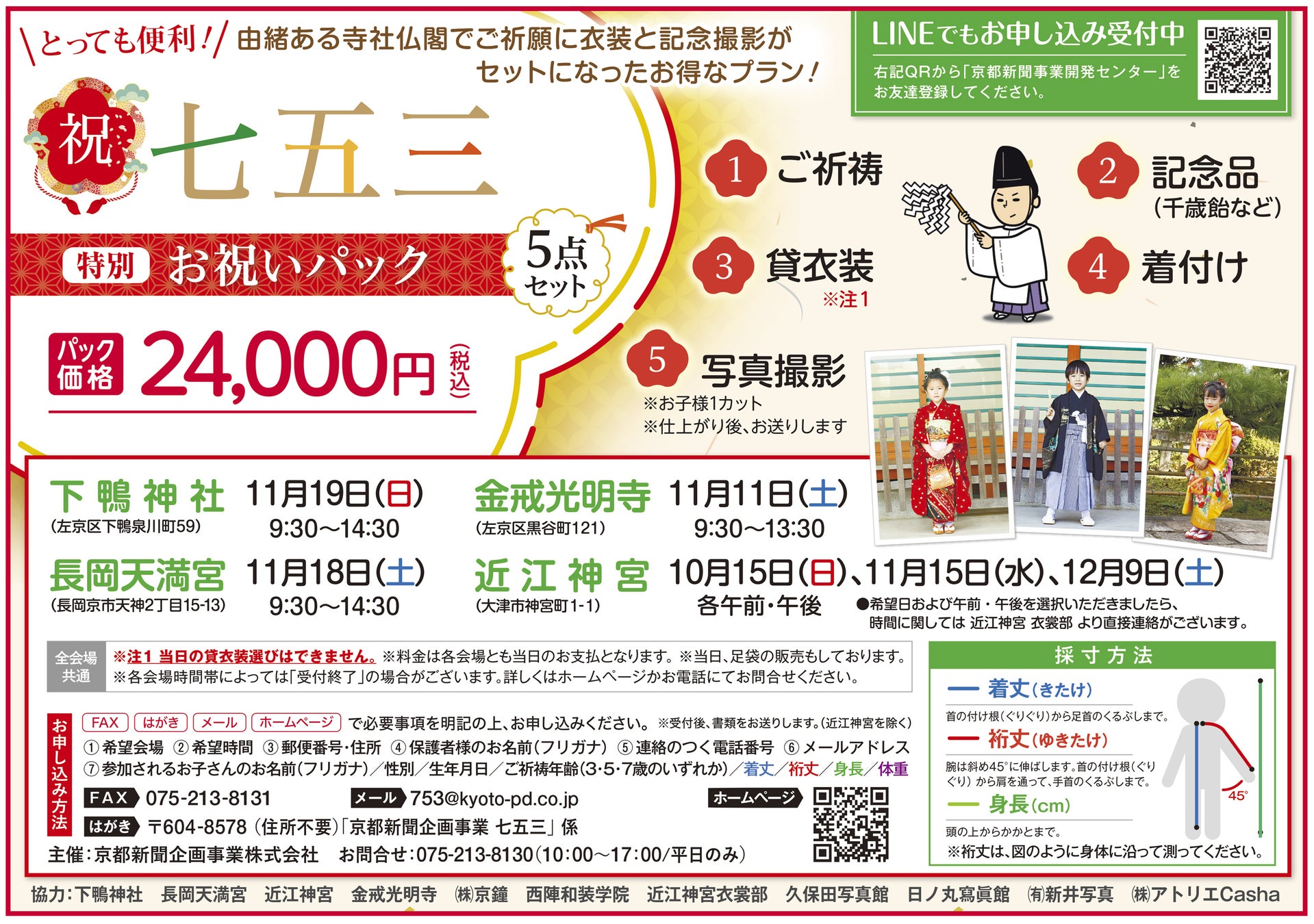 はがき:〒604-8578 京都市中京区烏丸通夷川上ル「京都新聞企画事業七五三」係に送る。