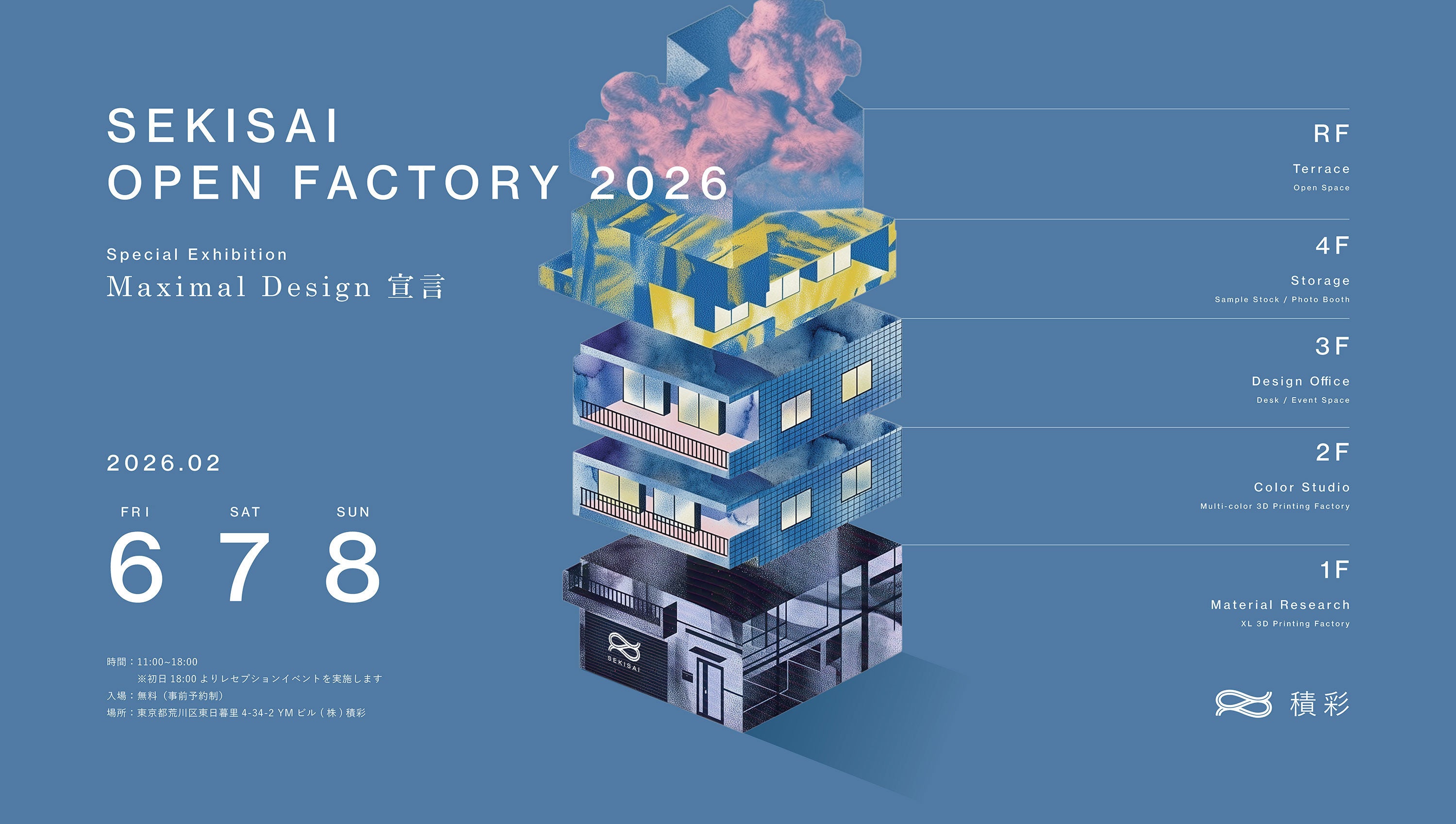 株式会社積彩(代表取締役:大日方 伸、本社:東京都荒川区、以下「積彩」)は、三度目のオフィス移転を機に、3Dプリンティングを用いたものづくりの現場を初めて一般公開するイベント「SEKISAI OPEN FACTORY 2026」を、2026年2月6日(金)〜8日(日)の3日間、東京・日暮里の積彩オフィスにて開催いたします。