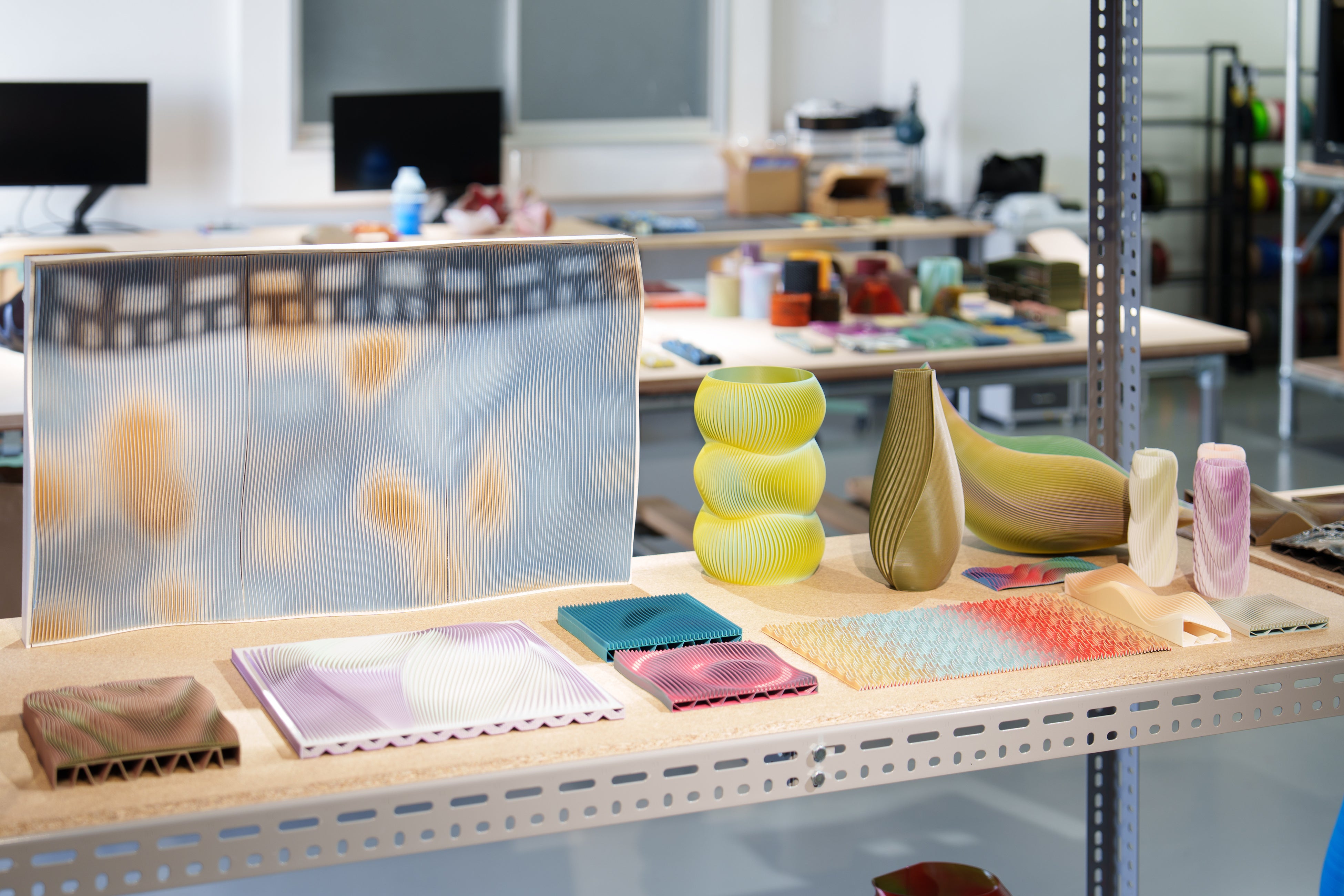 積彩はこれまで、3Dプリンターを用いて、色彩や素材、構造の実験を重ねながらものづくりを行ってきました。