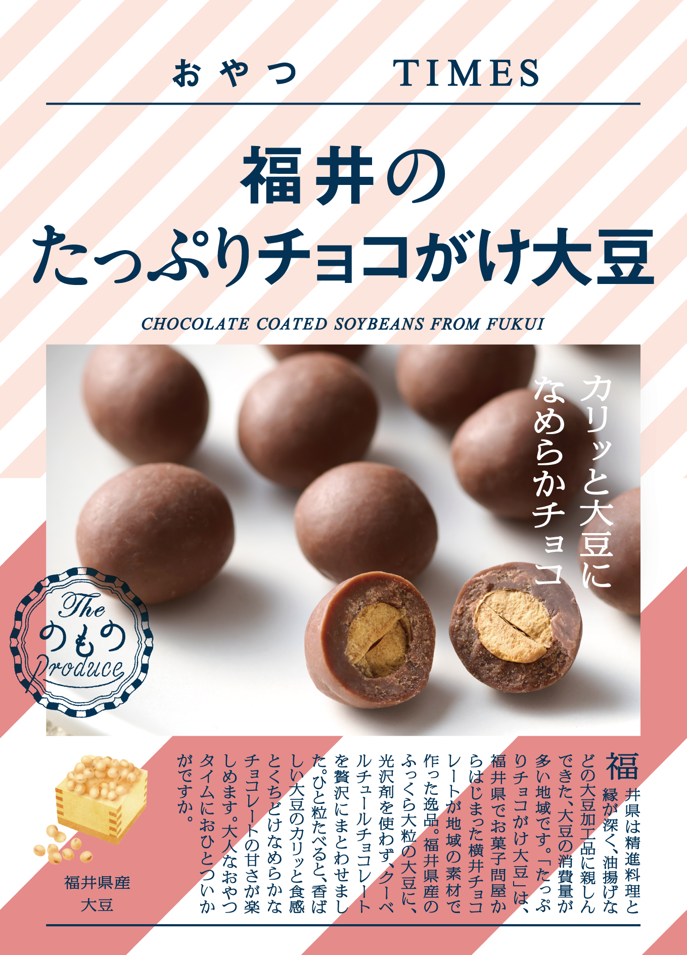 ~地産品ショップ「のもの」プロデュース~ 『おやつTIMES』秋冬限定商品に「福井のたっぷりチョコがけ大豆」が新登場!人気商品「高知のぽりぽりゆずけんぴ」の再販も開始します