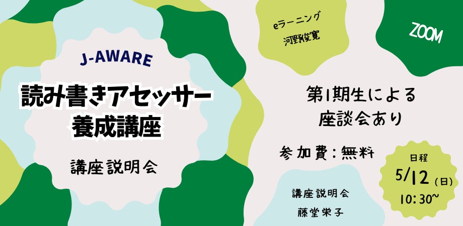 読み書きの特性に応じた学習方法を提案する【読み書きアセッサー養成講座(eラーニング)】修了生座談会&講座説明会を5月12日に開催します。