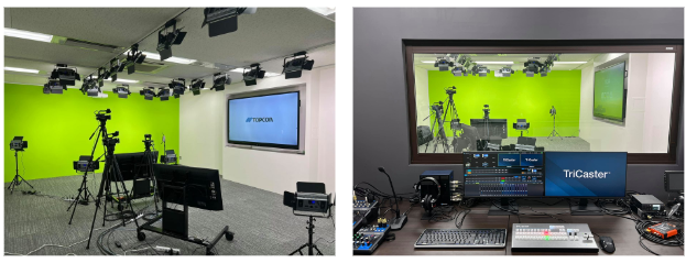 スタジオとして機能するために外部からの防音、室内の反響を抑える吸音、LED照明設備の設置、クロマキー撮影用カーテンなどの施工一式と、動画撮影に必要となる機材の選択と調達、設置調整、導入時の操作説明から保守サービスまでを「スタジオ構築コンサルティング」としてワンストップで提供。