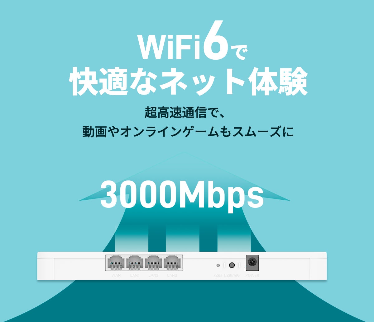 ●Wi-Fi 6 (AX3000)対応、最大3000Mbpsの高速&安定の通信を実現