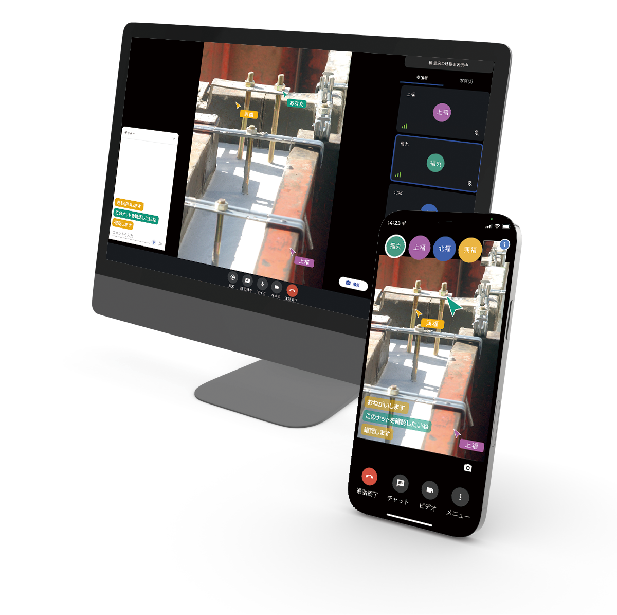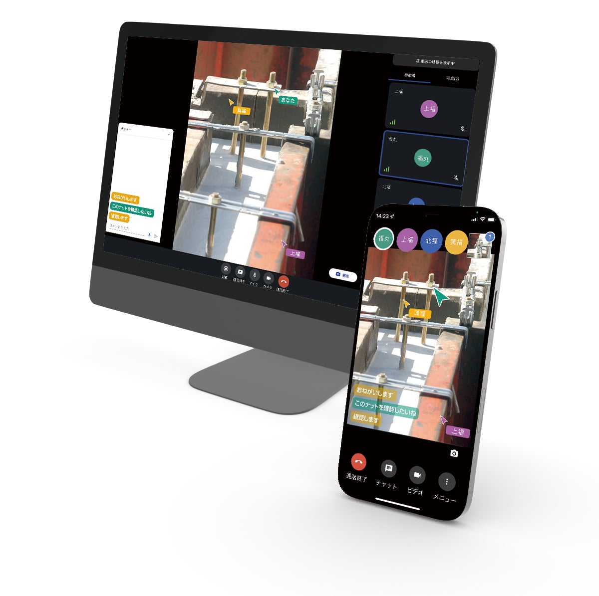 双方向の視覚的指示が可能なポインタ機能や騒音環境でもやり取りが可能な音声文字起こしチャット等の現場に浸透しやすい機能に加え、アプリ無しアカウント登録無しでも手軽に始められることを強みとするビデオ通話アプリ。建設業(ハウスビルダー)や電気・鉄道関連のインフラ業、製造業などを中心に導入中。