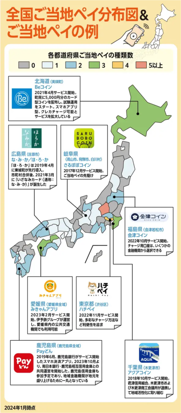 2024年1月時点の全国のご当地ペイの分布をまとめました。