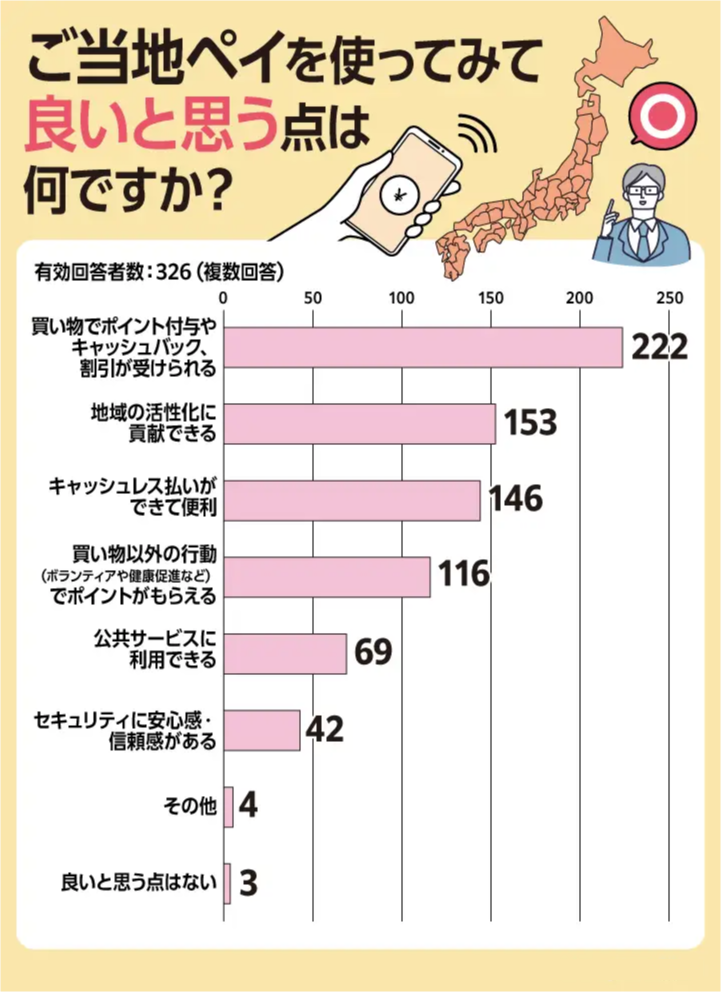 「ご当地ペイ」利用者330人へのアンケートからは、メリットやデメリットなどが明らかになりました。
