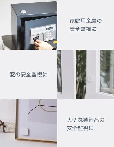 などに置いたり、貼ったりして安心を〝確保〟できます。振動などの検知も「高」「中」「低」の3段階を選べ、設置環境に合わせて自由にレベルを調整でき、いわゆる「誤通知」も低減できます。工事不要、スマホで始めることができる〝チョイ防犯〟グッズとして、先行発売されている欧米圏で支持されています。