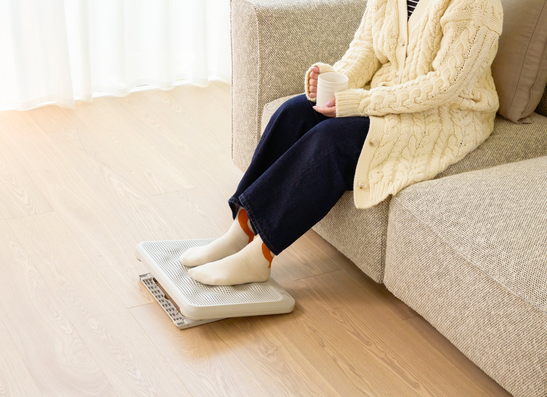 前モデルの「フットソールヒーター」の厚み約126mmに対し、約65%のスリム化を実現。使わないときは省スペースに収納可能です。