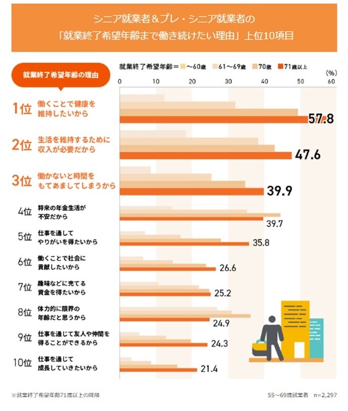 「シニアの就業実態・意識調査」を公開 高齢になっても働き続けたい理由は「健康」「収入」「やりがい」