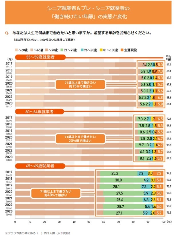 1. シニアの就業率は上昇しているが、働くシニアの「働き続けたい年齢」は変化していない