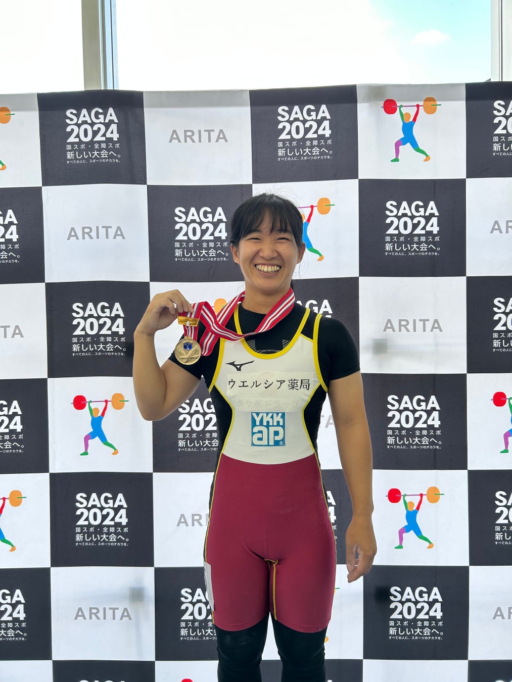 高橋いぶき選手は、ウエルシア薬局の店舗において6月より勤務を開始し、販売の仕事に従事しながら日々トレーニングに励んできました。今年10月15日(日)に鹿児島県薩摩川内市で行われた特別国民体育大会ウエイトリフティング競技会 女子49kg級においても優勝を果たしています。