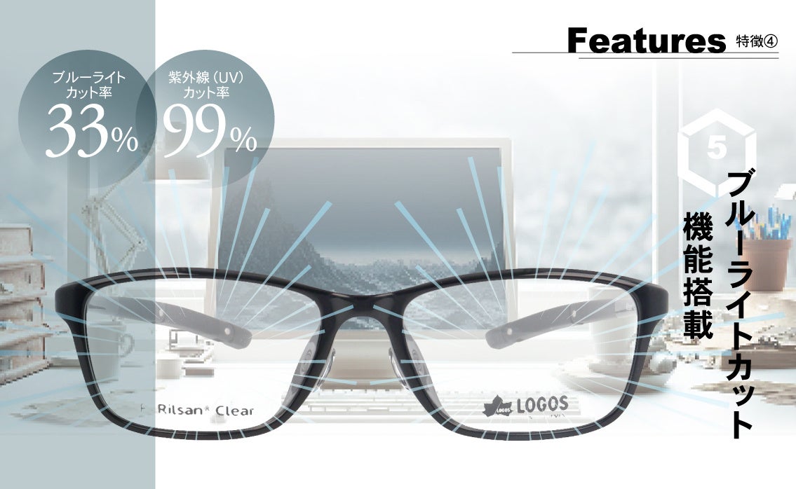 パソコンやスマートフォンの使用により、目に負担がかかる現代の生活に対応。ブルーライトを33%カットし、長時間の作業でも目の疲れを軽減します。
