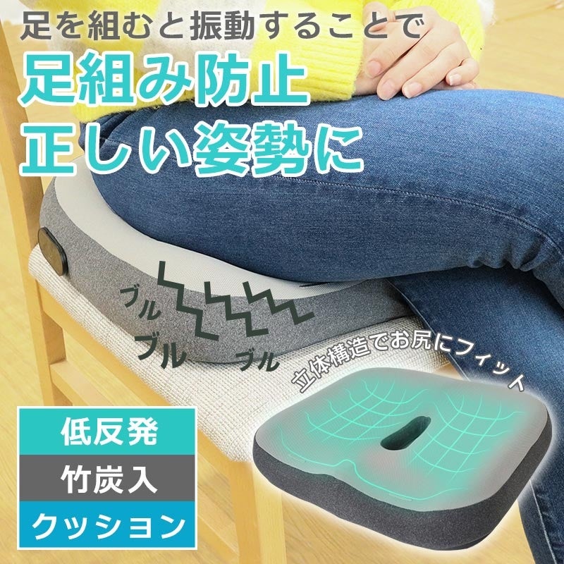 足を組むと振動でお知らせする足組み防止機能搭載クッション