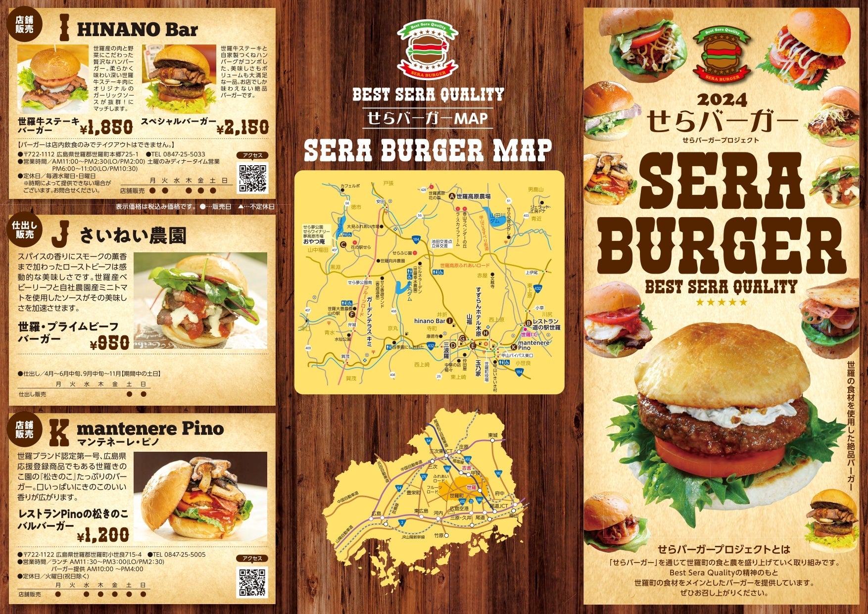 「せらバーガー」を通じて世羅町の食と農を盛り上げる取り組みです。「Best Sera Quality」の精神のもと、世羅町の食材をメインとしたハンバーガーを提供しています。