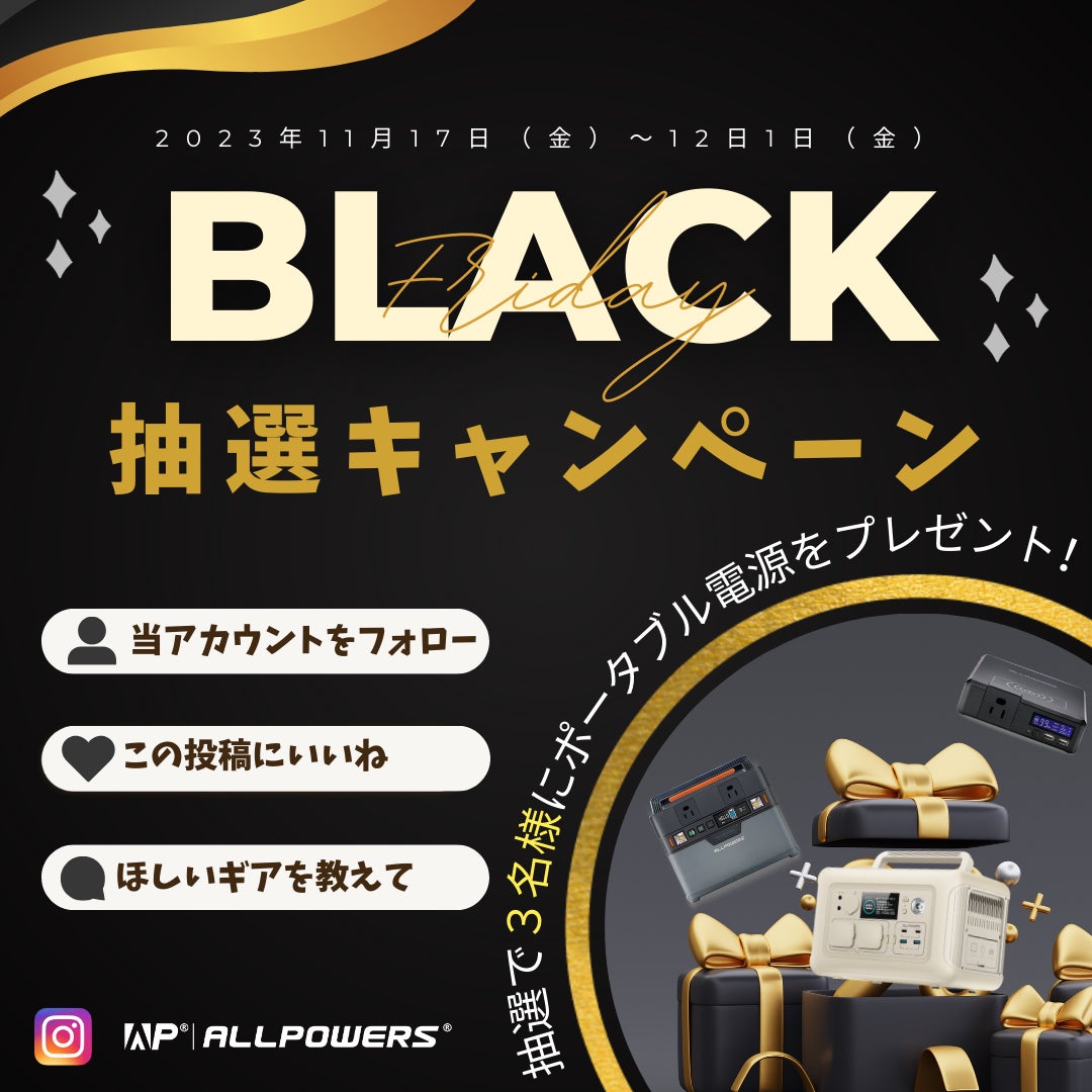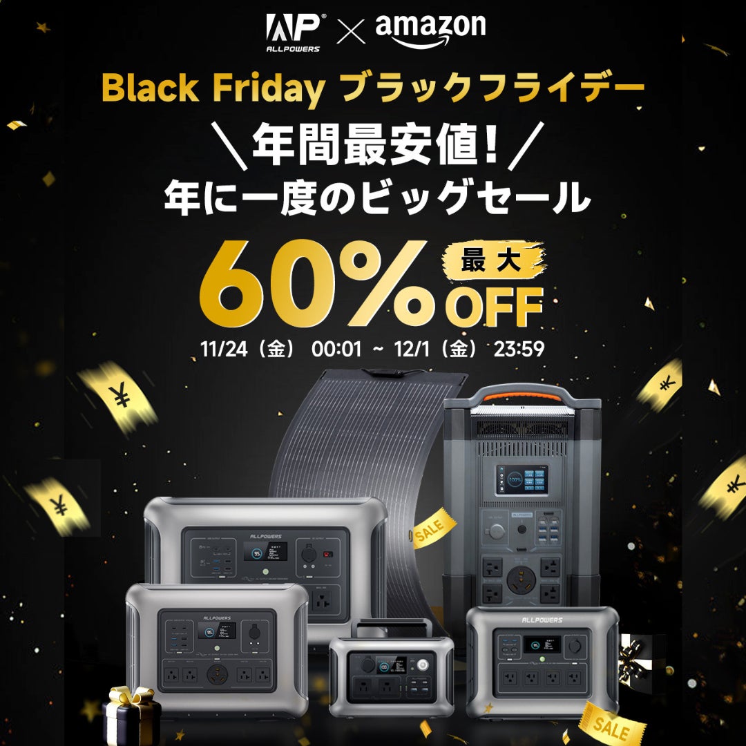 【ALLPOWERSブラックフライデー】年に一度のビッグセール開催!! ポータブル電源とソーラーパネルが最大60%OFF!さらに抽選キャンペーンも実施!