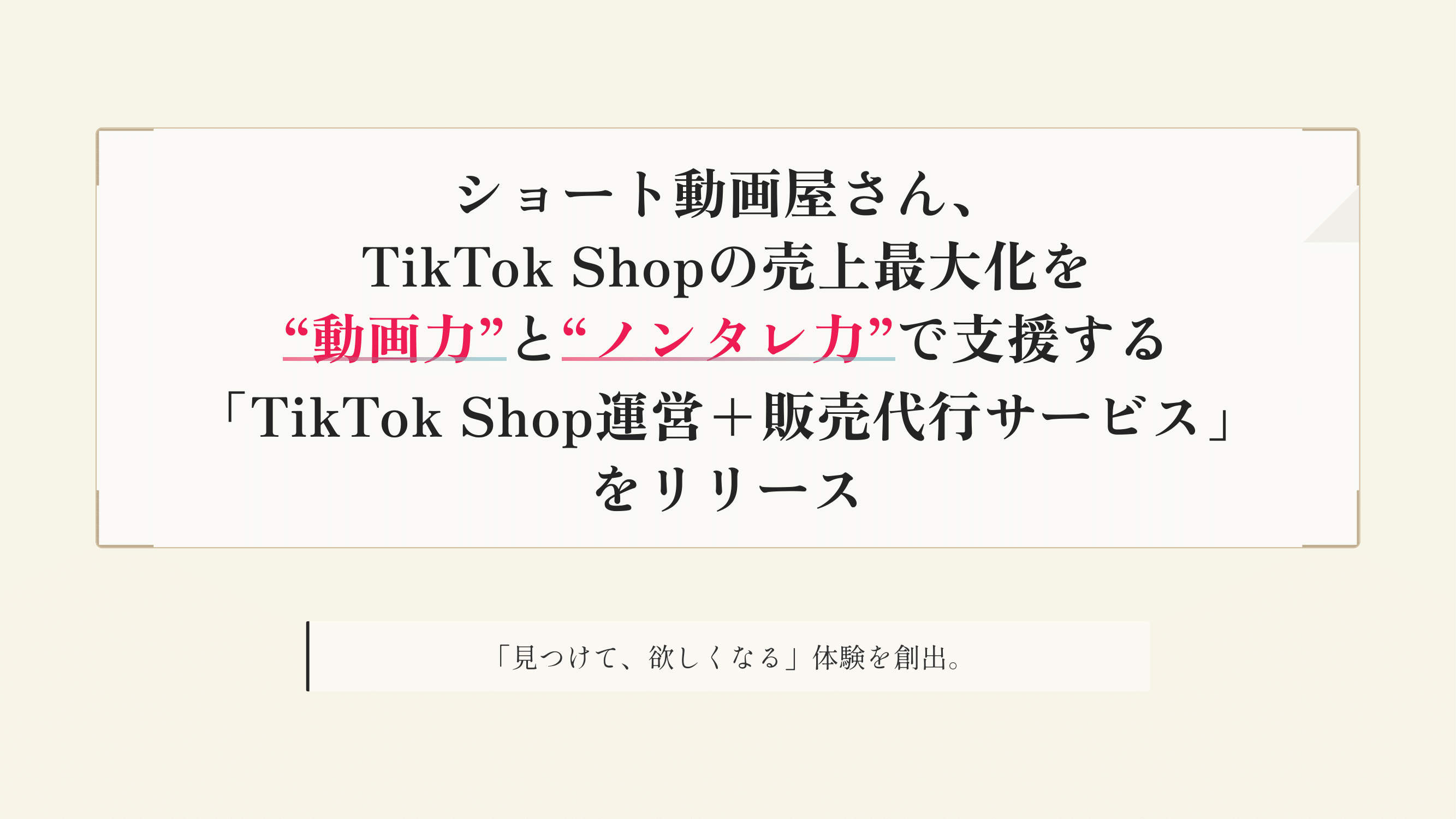 1本2万円台から制作「ショート動画屋さん」、「TikTok Shop等ライブコマース」の売上最大化を“動画力”"ノンタレ力"で支援する「ライブコマース運営+販売代行サービス」をリリース!