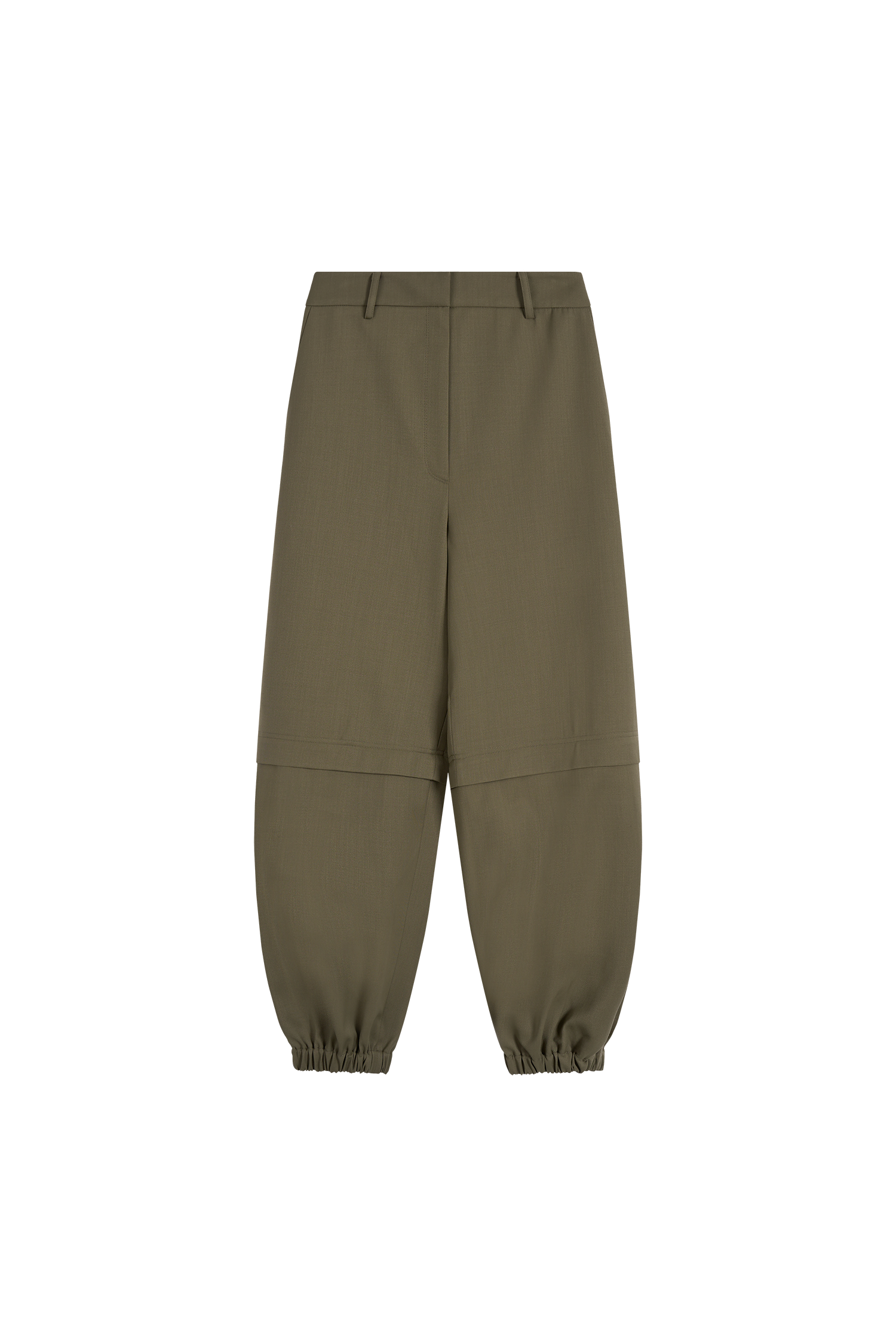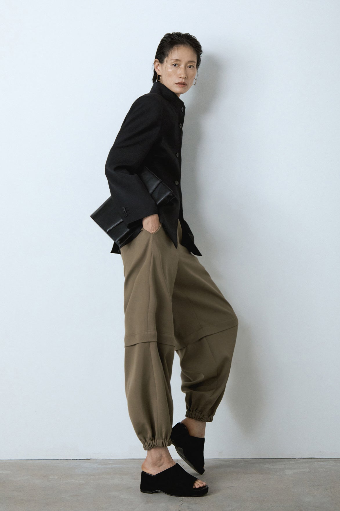ジャケットと同じシリーズのRATI(ラティ)バンディングパンツ。ウール混素材の心地よい肌触りと、リラックス感あるバミューダ丈へのアレンジも可能な2WAYデザインが魅力。膝に沿った切り替えがさりげないアクセントに。ウエスト&裾はバンディング仕様で、スタイルを選ばず快適な履き心地です。