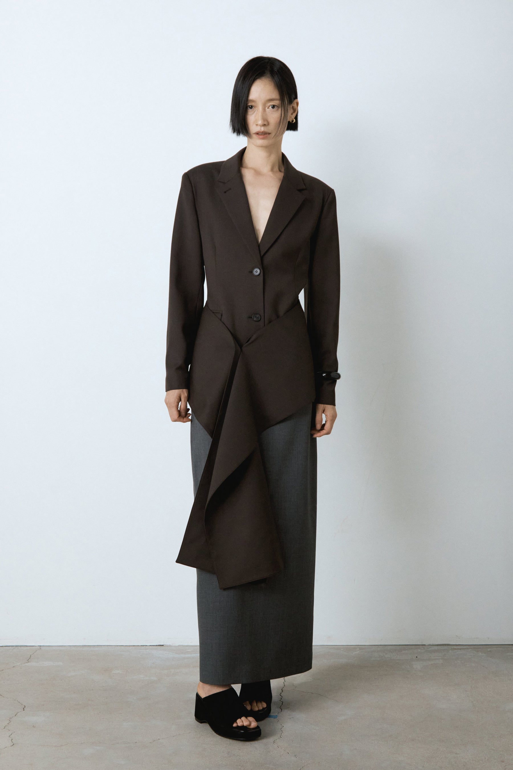 RATI(ラティ)アワーグラスジャケット。ウール混のしなやかな素材を使用し、上品な佇まいと着心地の良さを兼ね備えた一着。クラシカルな2ボタン仕様に、ウエストをほんのり絞ったアワーグラスシルエット(砂時計型)が特徴です。ミニマルな美しさで女性らしさをさりげなく引き立てます。日常でも、ドレスシーンにも万能に寄り添うジャケットです。