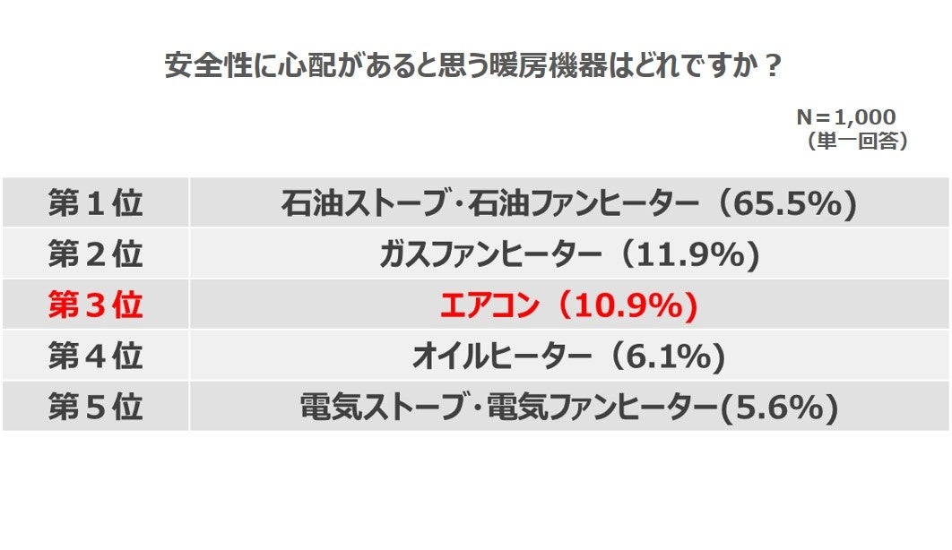 その一方でエアコンは手軽で安全な暖房機器として認知されていると明らかに