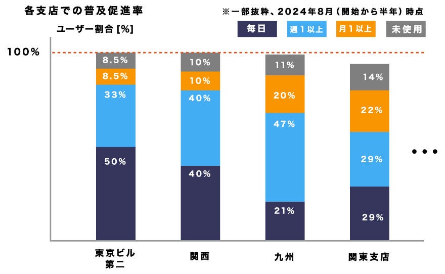同社では活用開始から約半年足らずで、全支店での日常業務で物件・設備ごとの管理や点検、メンテナンスの頻度に合わせ、日々の業務で実践活用しています。本社と現場が連携しながら仕組みの活用を推進することでボトムアップでの安全・品質強化や効率化、サービスレベル向上につながっています。