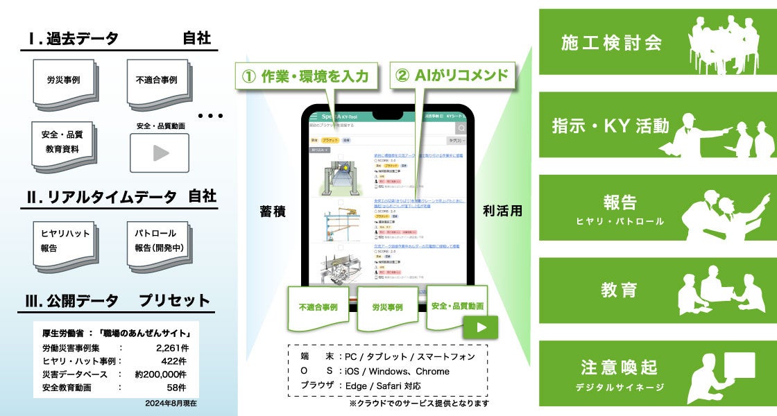 「SpectA KY-Tool」は安全管理・品質管理業務における情報活用課題への対策に特化したAIソリューションです。建設業や重工業、プラントEPC/O&Mなどの施工現場において急速に導入が進んでいます。