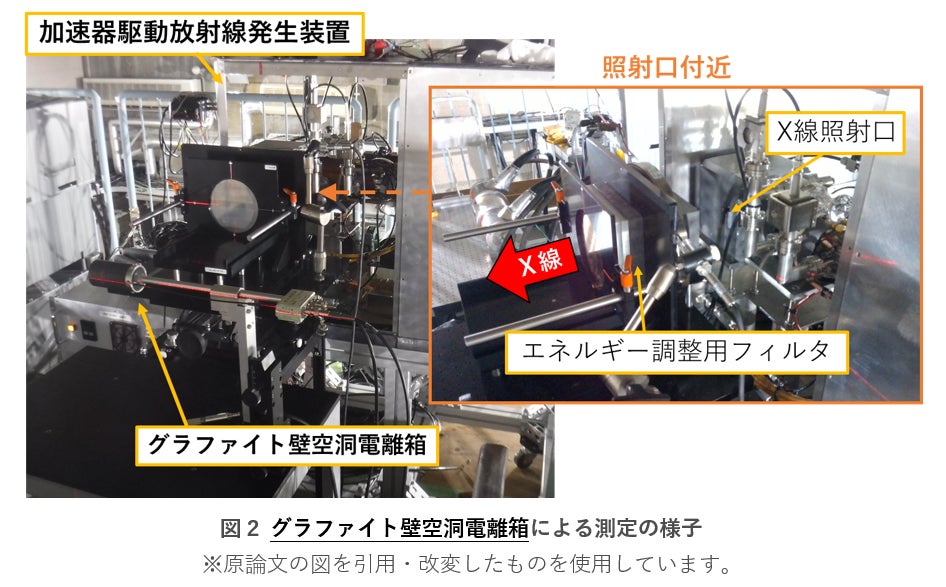 近年、放射線発生装置の高度化に伴い、多様な放射線環境での正確な被ばく管理が重要となっています。産総研の放射線標準研究グループでは、医療・工業・原子力などのさまざまな分野の放射線環境で利用される被ばく管理用線量計の試験のために、新たな線量計応答校正場の開発を目指しています。線量計の応答は放射線のエネルギー領域によって変化するため、正確に線量を評価するためには、線量計を使用する放射線環境と近いエネルギーの線量校正場でその応答を評価することが重要です。産総研では、2021年には従来の標準校正に用いられるX線場(250 keV程度)よりも高いエネルギーの線量校正場の構築に取り組み、市販のX線発生装置と、これまでCs-137(662 keV)やCo-60(平均1.25 MeV、1 MeV = 1000 keV)によるγ線の線量の絶対値測定に用いられてきたグラファイト壁空洞電離箱を用いて、400 keV付近のエネルギーのX線線量校正場を開発しました(2021年12月16日 誌上発表)。