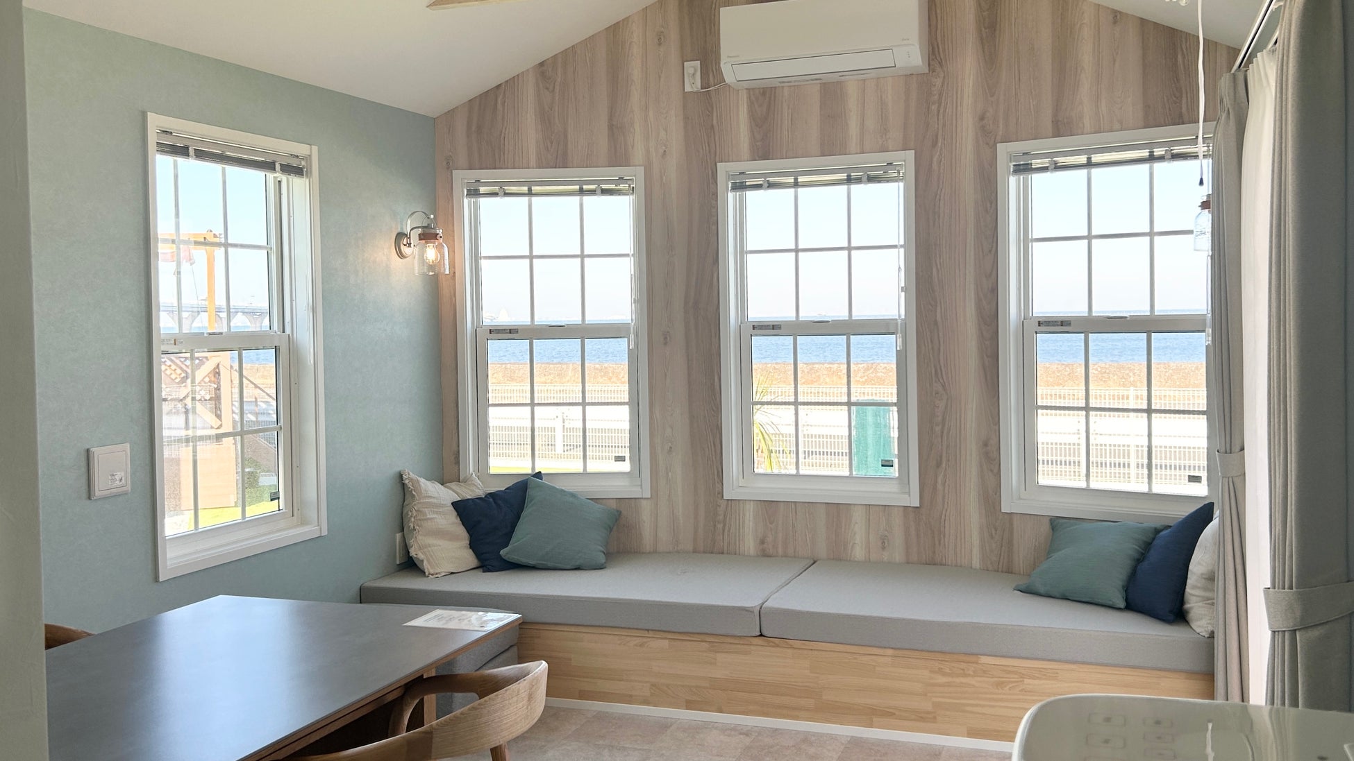 海を感じる内装デザインのトレーラーハウスホテル