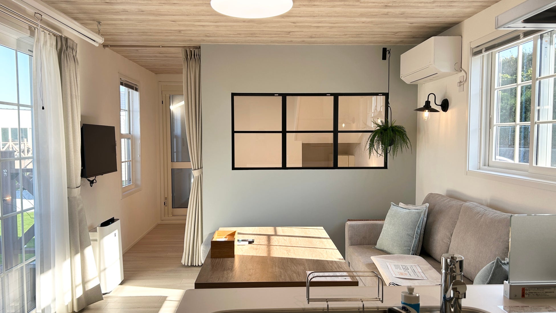 当施設は当社が自社開発・自社製造を行うトレーラーハウスを採用。9棟には海や自然、想起させる名前が付けられており、室内デザインもその世界観に合わせたカラーリングとインテリアでコーディネートされています。