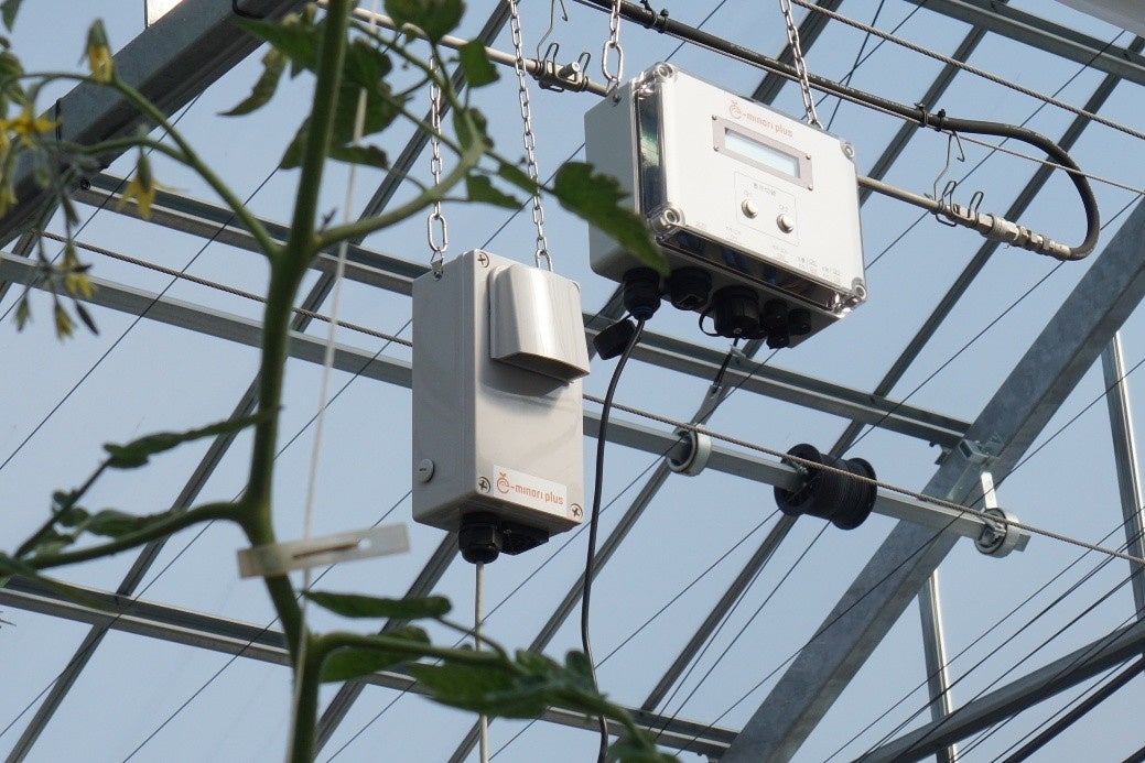 『e-minori plus』は、ハウス内外および土壌環境をセンサーで測定し、クラウド上にデータをアップロード、ハウス内設備と接続することで、いつでも・どこでもパソコンやスマートフォンから環境データの確認と制御が可能なスマート農業支援システムです。