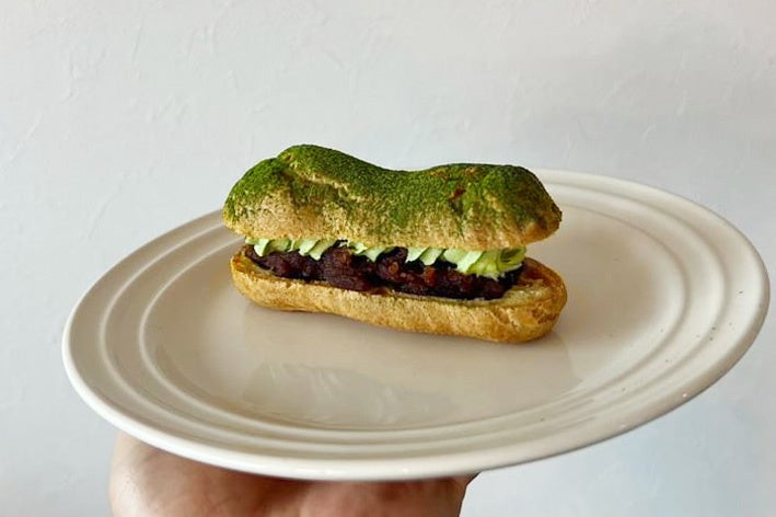 さらに、ツアー終了時には、本庄剣柄稲荷神社からほど近いスイーツ専門店SWEETS SHOP PON(代表:巣山直紀)が、このツアーのためだけに準備した「てんのつかエクレア」をプレゼント。こちらは、くにとみ史跡・文化ガイドの会のボランティアガイドである長友律子さんが、26号墳(てんの塚)がエクレアのカタチに似ていることに気づき、イラストを描いたものを元にした創作スイーツとなっています。