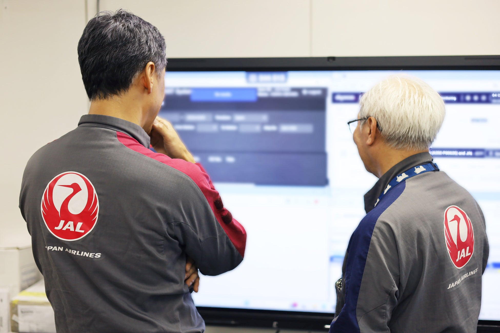 JALエンジニアリング 様では、2023年11月にトライアルで『MIRAI TOUCH Biz』を導入し、2024年4月より正式導入となりました。現在は、航空整備士の人員配置に関する打ち合わせや、トラブル発生時の緊急会議などの際にご活用いただいています。