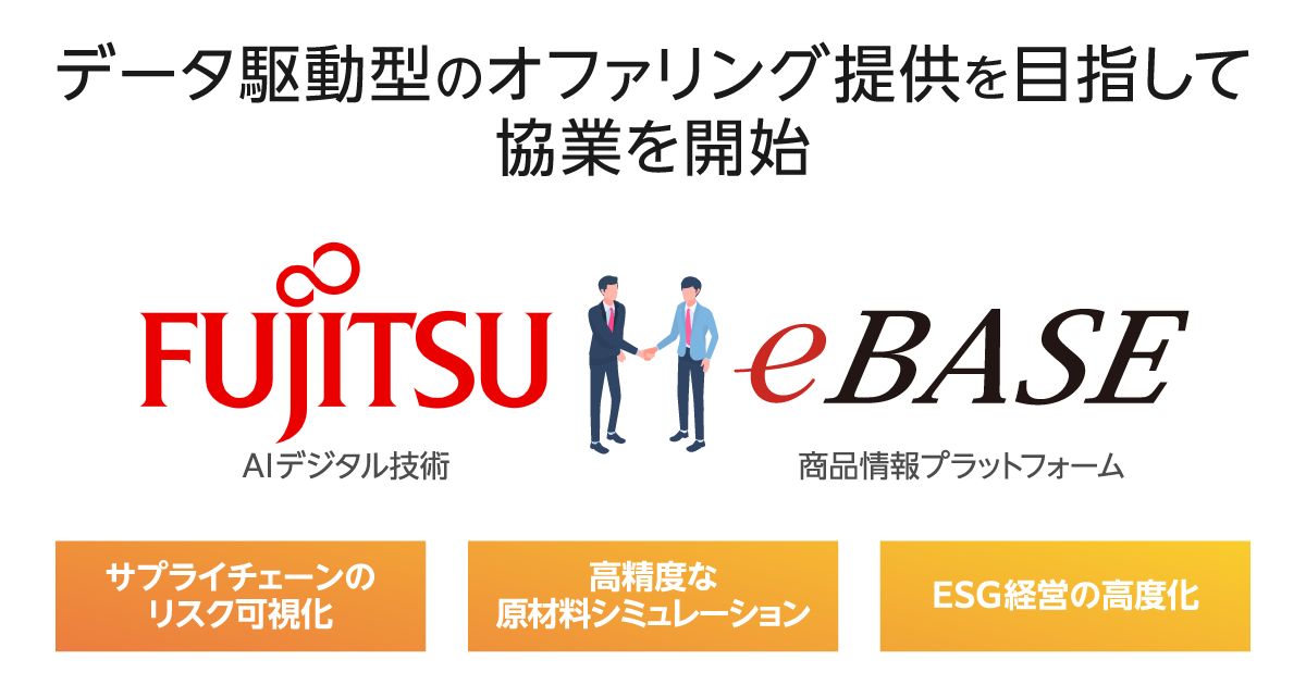 富士通株式会社のAIデジタル技術とeBASEの商品情報プラットフォームを組み合わせ、企業価値向上に貢献するデータ駆動型のオファリング提供を目指して協業を開始