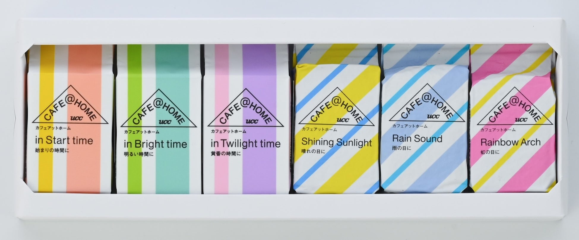 ※セット製品に含まれるCAFE@HOME 『Shining Sunlight 晴れの日に』、『Rain Sound 雨の日に』、『Rainbow Arch 虹の日に』の3種はレインフォレスト・アライアンス認証農園産コーヒー豆使用対象外です。