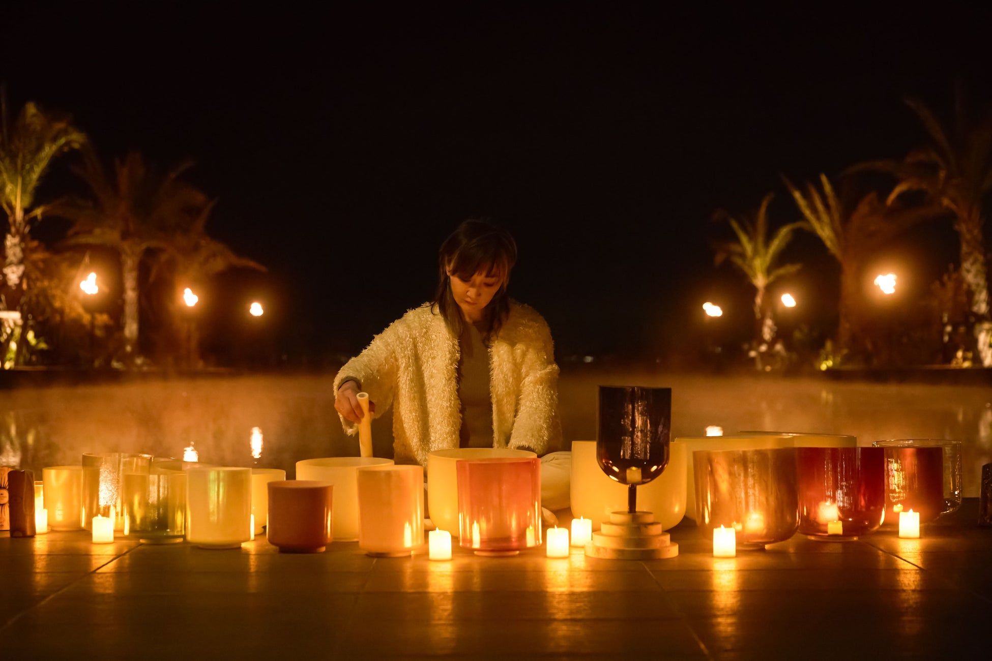初夏のBPCでは、月に1度、21時以降のBGMを消し、クリスタルサウンドアーティスト「Crystal Om」によるクリスタルボウルなどの楽器が生み出す音を浴びる“サウンドバス”セッションを開催!水上ハンモッグやプールベッドに身を委ね、心地よい自然音に重なるクリスタルボウルの音や振動に包まれれば、日々の謙遜から逃れ、深いリラクゼーションとともに心身ともにリセットされる感覚を体験いただけます。