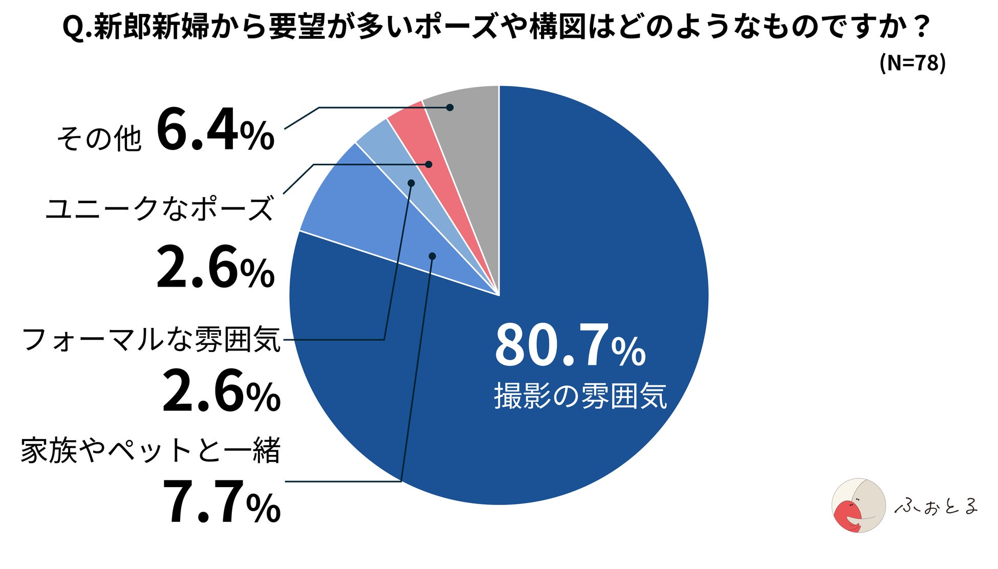 その他には「部分取り撮影(手や口元より下の写真で雰囲気重視)」「ペットと一緒」「思い出のグッズと」「依頼者による」など、さまざまな回答がありました。