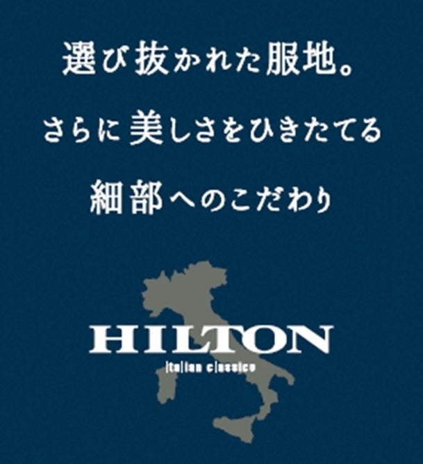 スーツは、「洋服の青山」が誇る最上級ブランド「HILTON(ヒルトン)」で展開。イタリアンクラシコをベースとした立体的なシルエットが特徴です。裏地・芯地・ボタンに至るまで妥協を許さない当社のこだわりと、軽やかで柔らかい極上の着心地を提供します。