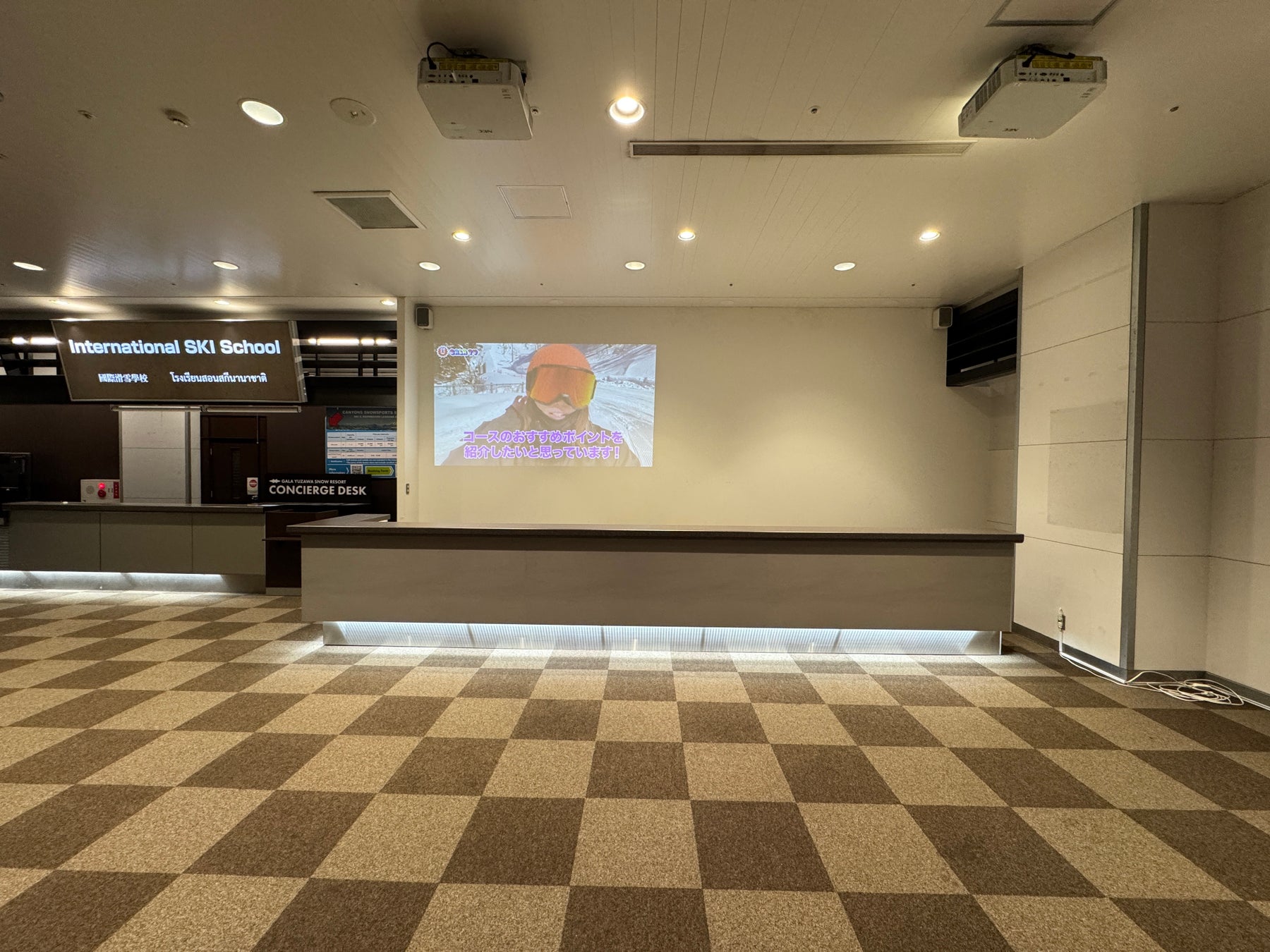こちらでは主にインバウンドのお客さま向けに、スノーアクティビテイメニューの受付やご案内を行い、スムーズに行えるようになります。またコンシェルジュカウンターも併設して、レストランやレンタルなど総合的なご案内も行います。