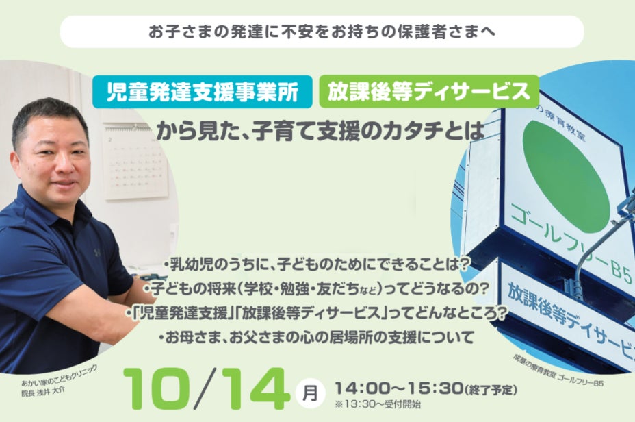 滋賀県大津市と守山市で放課後等デイサービスを運営する「成基の療育教室 ゴールフリーB5」と大津市で児童発達支援事業所を運営する「あおい湖のこどもサポートルーム」は2024年10月14日(月)、滋賀県草津市で、お子さんの発達に不安を持つ保護者を対象に、子育て支援セミナーを開催します。