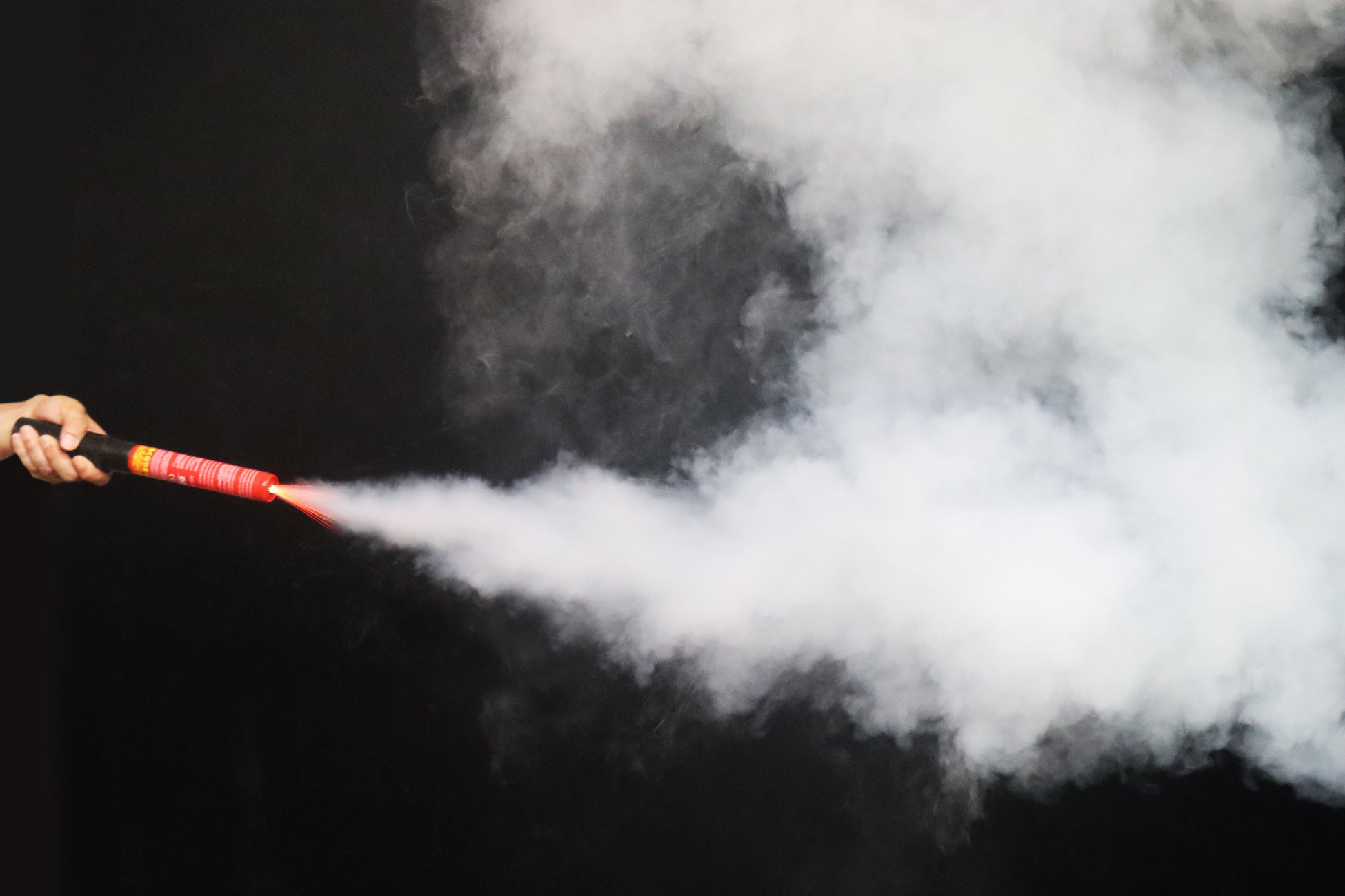 一般的な消火器のように粉末を噴射するのではなく、人体・環境に無害な不活性ガス(微細なカリウム粒子、窒素、水蒸気)による窒息消火のため、粉末を吸い込んでしまうリスクや粉末による汚損や機器類への酸化ダメージを与えません。初期消火を行った後の清掃が簡便で、即座に現場復旧が可能です。