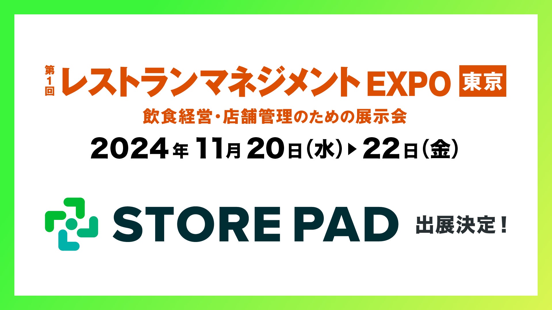 店舗集客媒体対応効率化AI SaaS 「STOREPAD(ストアパッド)」が幕張メッセで行われる展示会「飲食業界イノベーション Week」内の「第1回 レストランマネジメントEXPO 東京」に出展