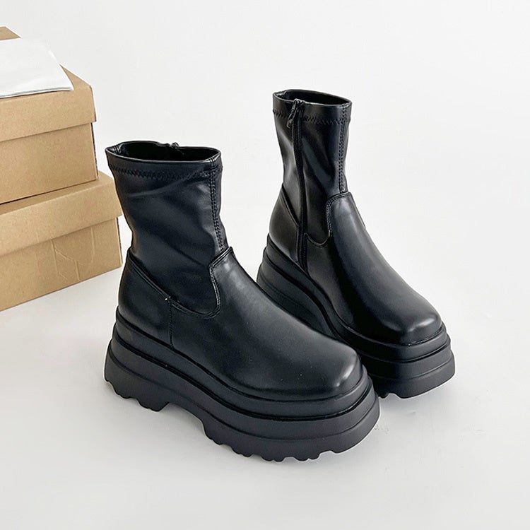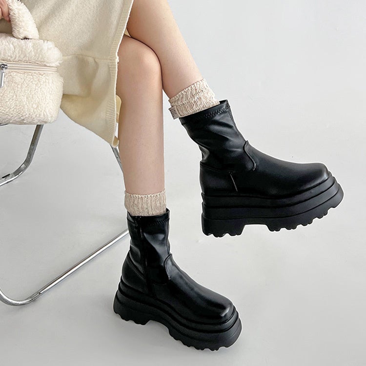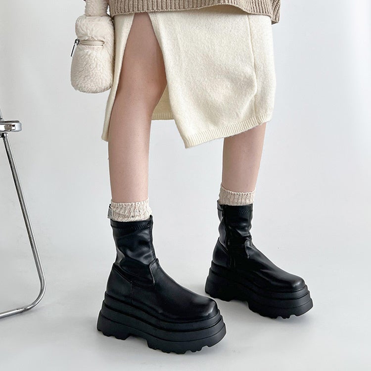 厚底トリプルソール ストレッチ フィット ショートブーツ 2896