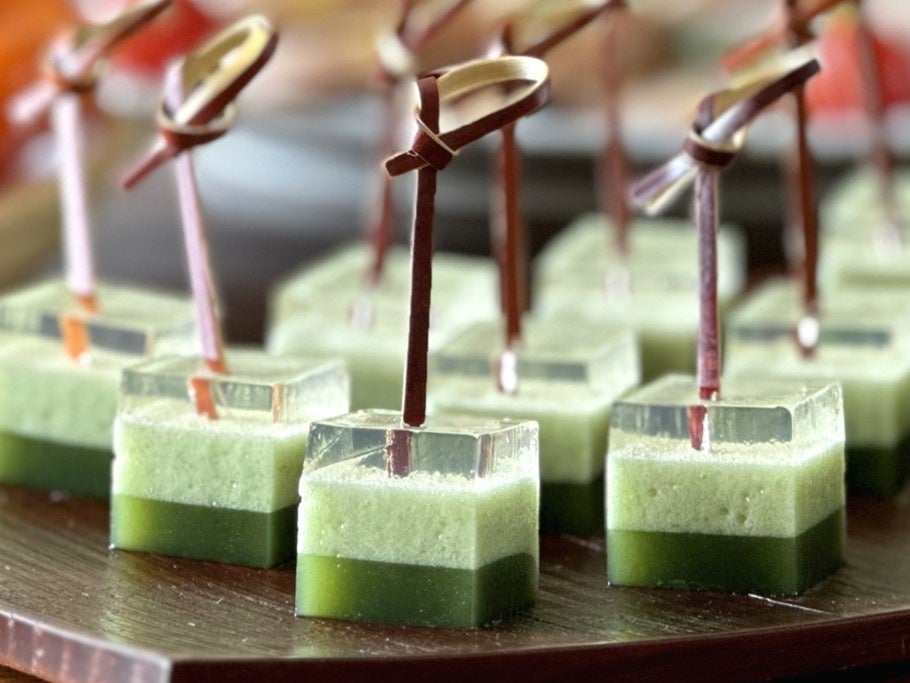 美しい三層構造と上品な甘さが特長、視覚と味覚を満たす和のデザート。デザートから前菜まで、幅広く活躍する美しい和スイーツ