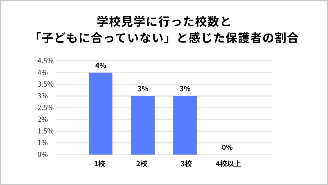 学校見学、参加校数は平均2.5校。複数校見学した人ほど子どもに合う学校を見つけられている