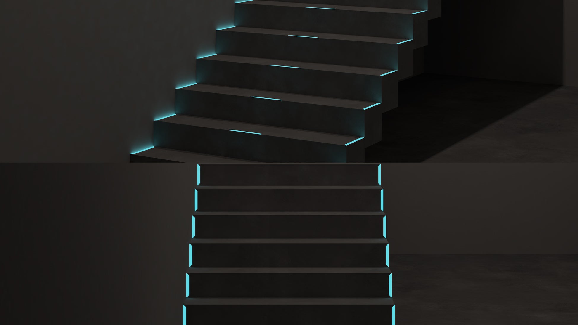暗闇の代表的な課題空間を、高輝度蓄光×自由な組み合わせによるデザインで、安全誘導と美観を両立