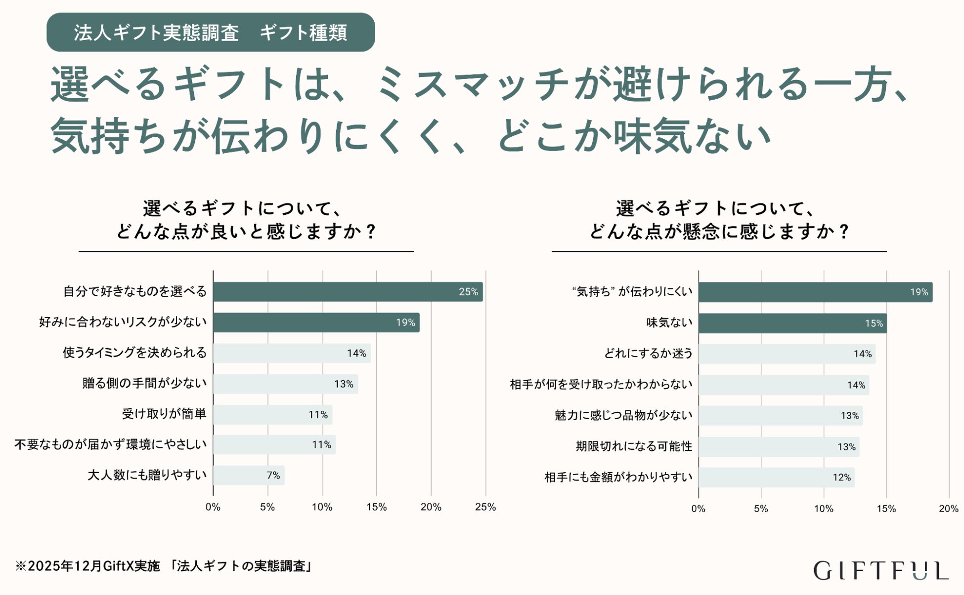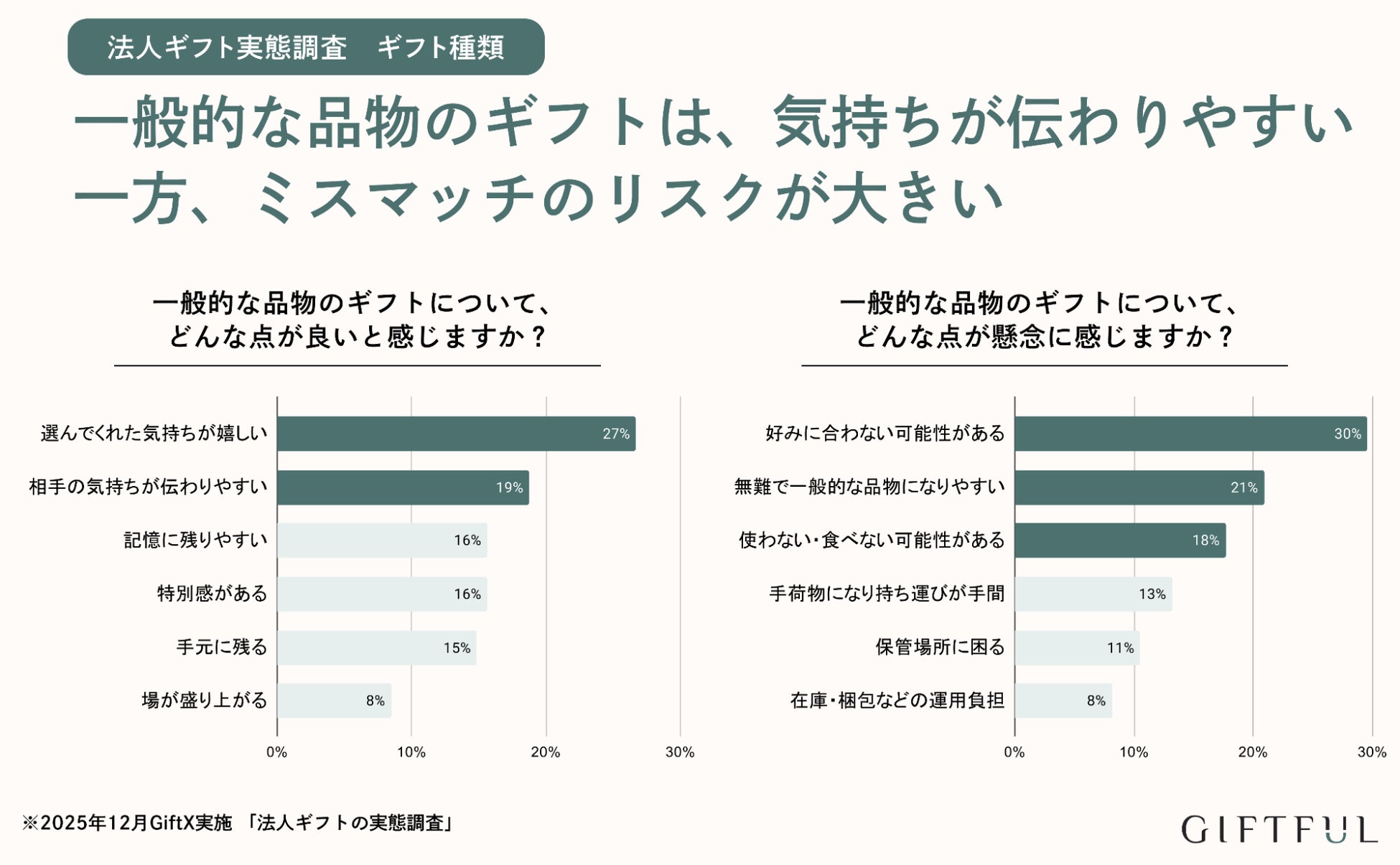 一方で懸念点として、好みに合わない、無難な品物になるなど、法人ギフト特有のミスマッチに関する点が挙げられている
